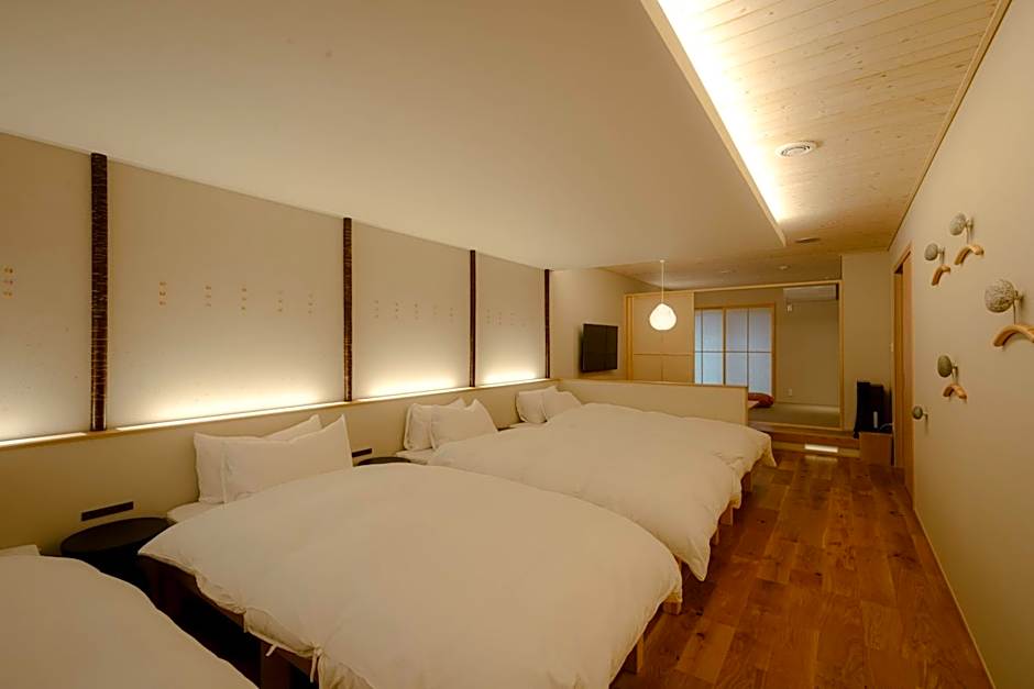 The quadruple room includes a private bathroom, well-fitted with a bath, a shower, a bidet, a hairdryer and slippers. Guests can make meals in the kitchen that is fitted with a stovetop, a refrigerator, kitchenware and a microwave. This quadruple room is air-conditioned and has a seating area with a flat-screen TV, a washing machine, tatami, soundproof walls, as well as an electric kettle. The unit has 2 beds and 2 futons.
